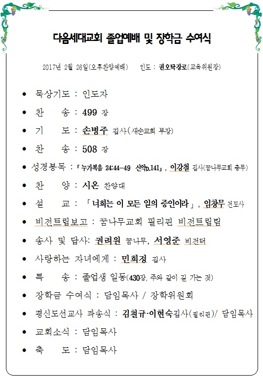 ´ÙÀ½¼¼´ë±³È¸ Á¹¾÷¿¹¹è ¹× ÀåÇÐ±Ý ¼ö¿©½Ä