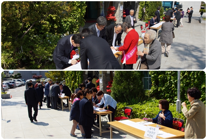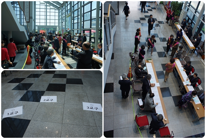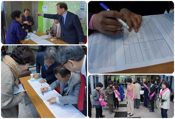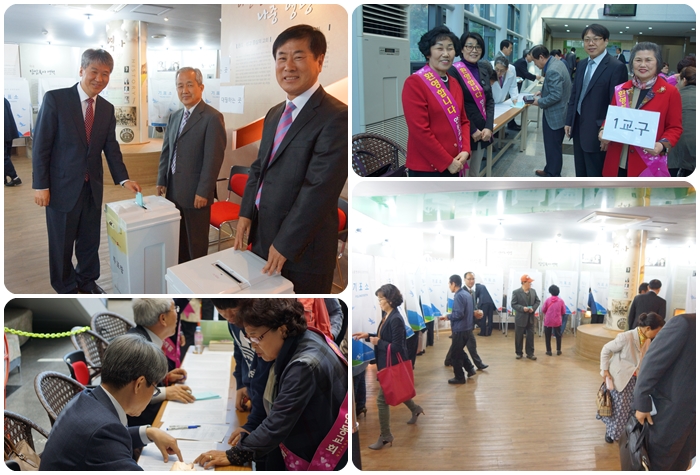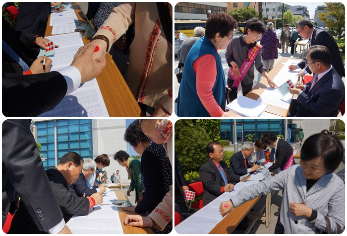 4¿ù 23ÀÏ 1ºÎ¿¹¹è ÀÌÈÄ¿Í 30ÀÏ Âù¾ç¿¹¹è ÈÄ 1, 2Â÷ °øµ¿ÀÇȸ½Ã "Àå·Î5ÀÎ, À帳Áý»ç 6ÀÎ, ±Ç»ç7ÀÎ ¼±ÃâÀ» À§ÇÑ ÅõÇ¥"°¡ ÀºÇý·Ó°Ô ÁøÇàµÇ¾ú½À´Ï´Ù.