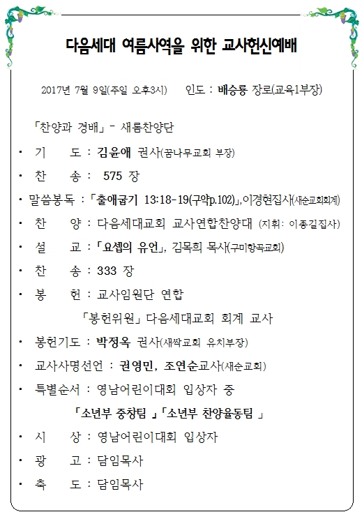 ´ÙÀ½¼¼´ë ¿©¸§»ç¿ªÀ» À§ÇÑ ±³»çÇå½Å¿¹¹è À̸§ : ÀÓ⹫