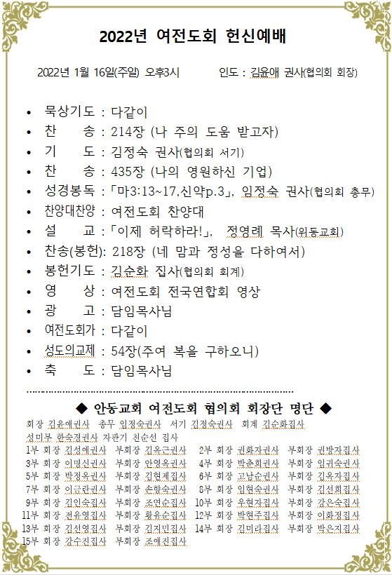 ´ëÇ¥ : ¾Èµ¿±³È¸ / ÀüÈ­ : 054) 858-2000/2001 / ÆÑ½º : 054) 858-2002  Designed by andong.com