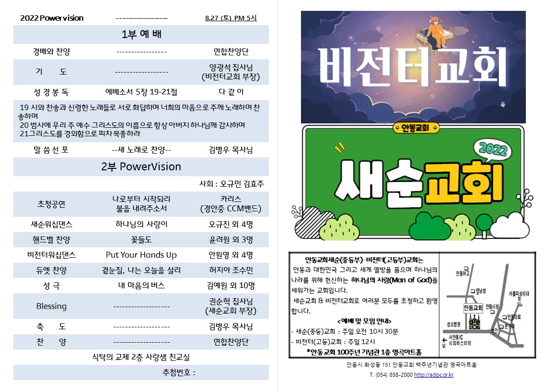 ´ëÇ¥ : ¾Èµ¿±³È¸ / ÀüÈ­ : 054) 858-2000/2001 / ÆÑ½º : 054) 858-2002  Designed by andong.com