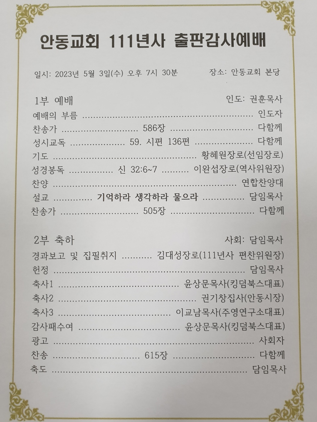 ´ëÇ¥ : ¾Èµ¿±³È¸ / ÀüÈ­ : 054) 858-2000/2001 / ÆÑ½º : 054) 858-2002  Designed by andong.com