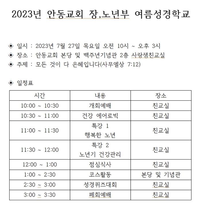 Àå¼Ò : ¾Èµ¿±³È¸ ¹éÁÖ³â±â³ä°ü »ç¶û»ùÄ£±³½Ç
