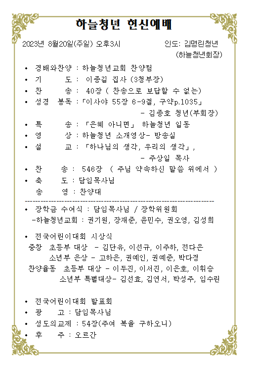 2023 ÇÏ´Ãû³â Çå½Å¿¹¹è & ÇϹݱâ ÀåÇÐÁõ¼­ ¼ö¿©½Ä-¾î¸°ÀÌ´ëȸ ÀÔ»ó ¹ß À̸§ : Á¤ÁØÈ¯