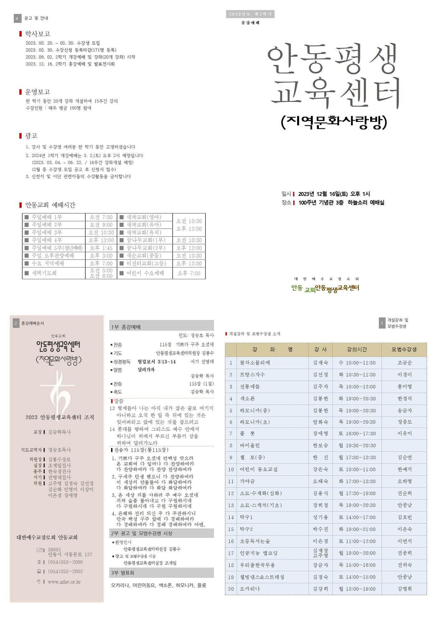 2023³â ¾Èµ¿Æò»ý±³À°¼¾ÅÍ 2Çбâ Á¾°­¿¹¹è À̸§ : Á¤½ÂÈ£
