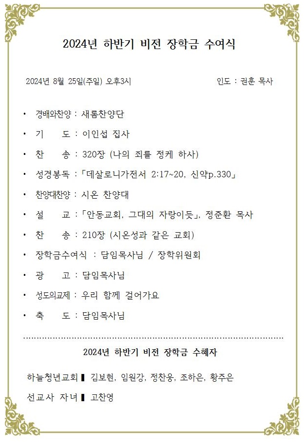 2024 ÇϹݱ⠺ñÀü ÀåÇÐ±Ý ¼ö¿©½Ä À̸§ : ±è±âÁß