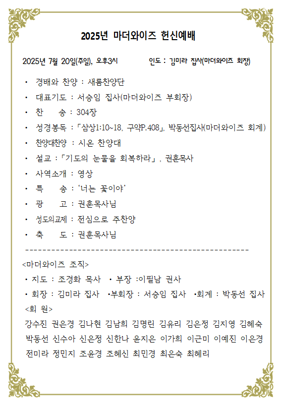 2025³â ¸¶´õ¿ÍÀÌÁî Çå½Å¿¹¹è ÀÏÀÚ : 2025³â 7¿ù 20ÀÏ(ÁÖÀÏ)