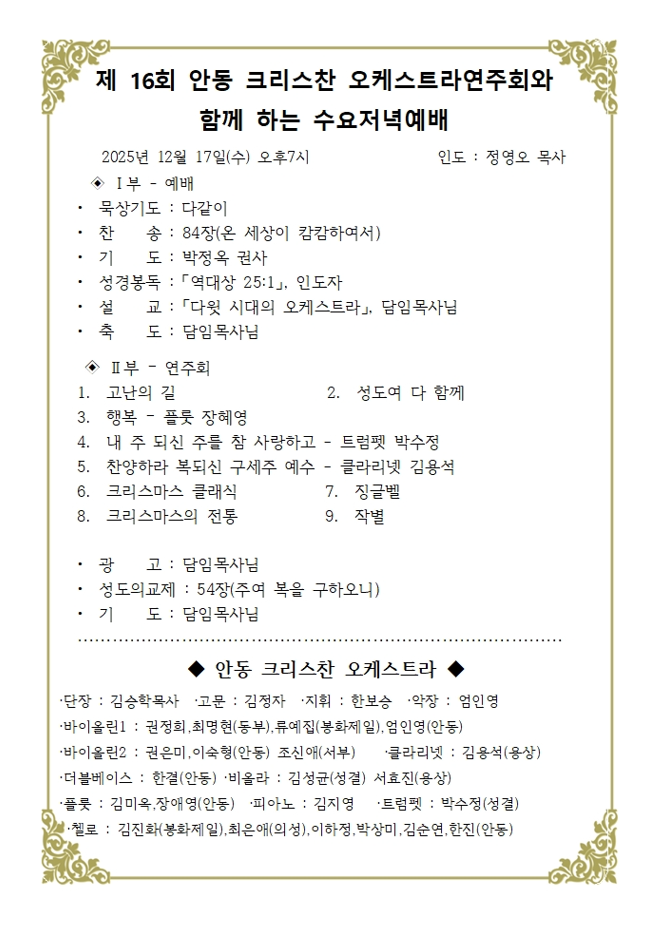 Á¦16ȸ ¾Èµ¿ Å©¸®½ºÂù ¿ÀÄɽºÆ®¶ó ¿¬ÁÖȸ¿Í ÇÔ²² ÇÏ´Â ¼ö¿äÀú³á¿¹¹è À̸§ : À±Á¤È£