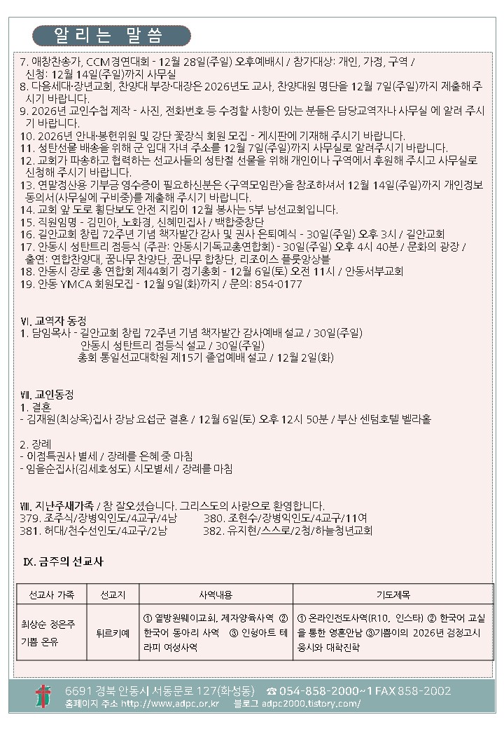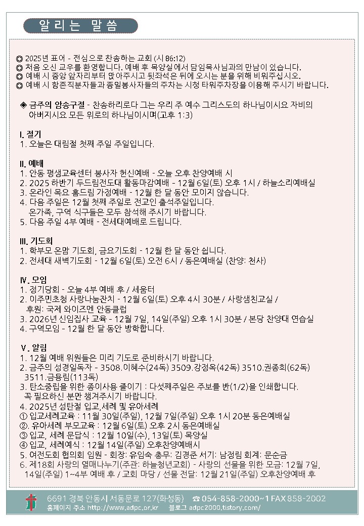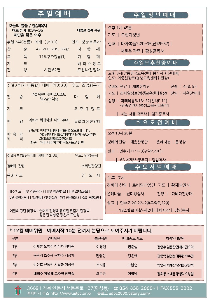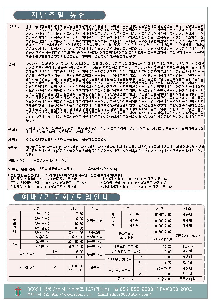´ëÇ¥ : ¾Èµ¿±³È¸ / ÀüÈ­ : 054) 858-2000/2001 / ÆÑ½º : 054) 858-2002  Designed by andong.com
