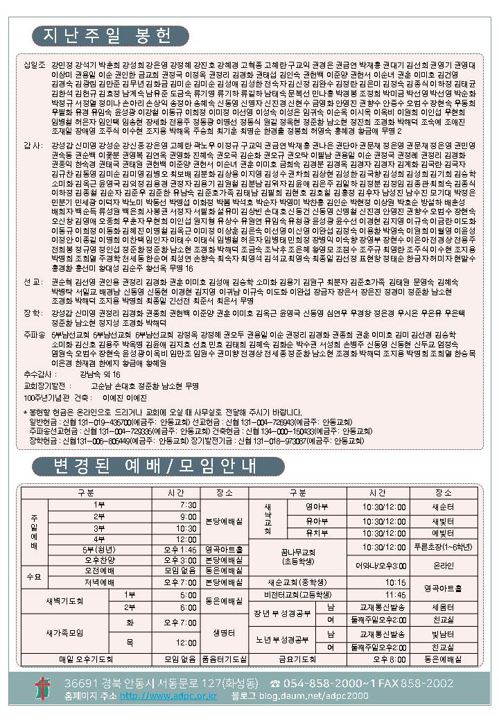 Copyright ¨Ï 2009 ¾Èµ¿±³È¸ All rights reserved. ´ëÇ¥ : ¾Èµ¿±³È¸ / ÀüÈ : 054) 858-2000/2001 / ÆÑ½º : 054) 858-2002 Designed by andong.com