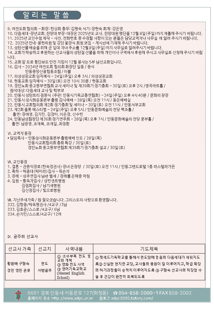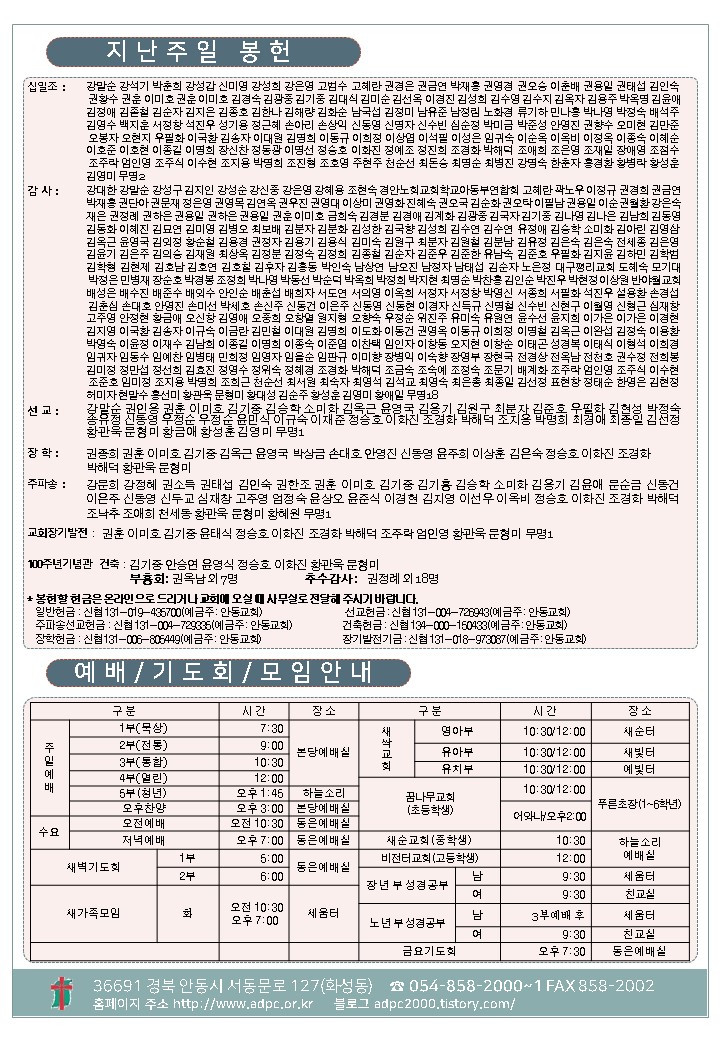 ´ëÇ¥ : ¾Èµ¿±³È¸ / ÀüÈ­ : 054) 858-2000/2001 / ÆÑ½º : 054) 858-2002  Designed by andong.com